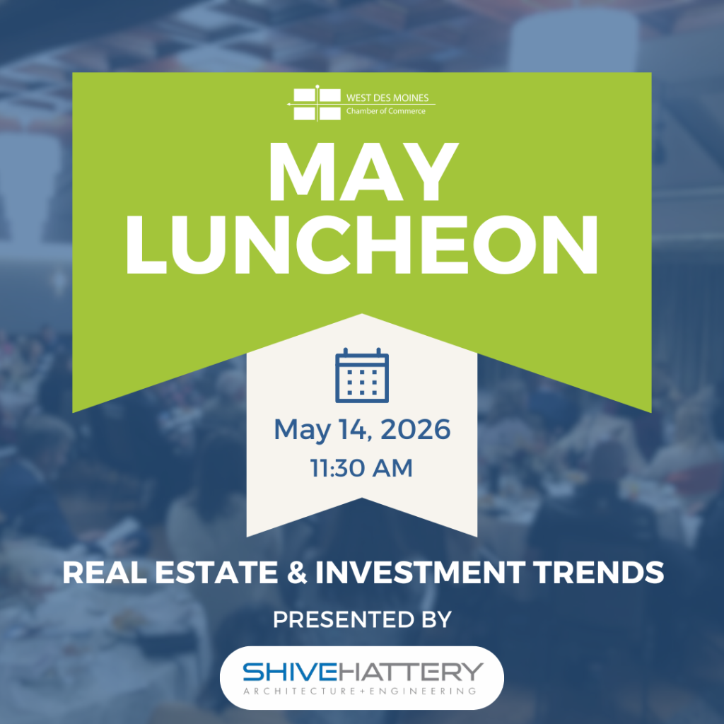 Join us for the May 2026 Luncheon: Real Estate Trends & Investments, a timely conversation on the forces shaping development, investment, and growth across West Des Moines and the Greater Des Moines region.